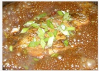 7:水开了放少许入糖,然后再加点醋,撒上葱花,烧几分钟,差不多汤汁变得浓稠、撒点葱花就可以了。