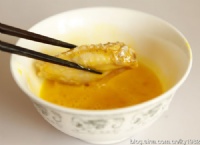 5:腌好的鸡翅放入打散的鸡蛋液中滚匀。