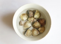 1:在水中放入少许盐或者滴几滴麻油,把蛤蜊放入水中浸泡2个小时,使其吐干净泥沙。